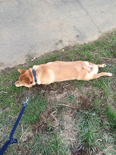 普通のフセじゃダメなのか?よくわかりませんが、ツチノコ柴犬になります。